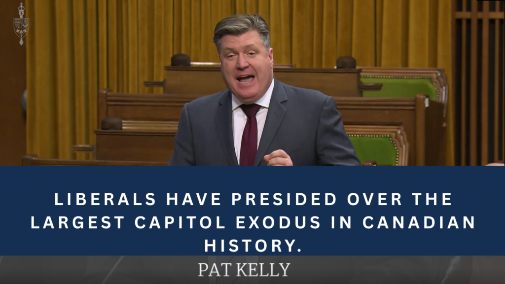 “These Liberals have presided over the largest capitol exodus in Canadian history.” / News / By Pat Kelly, MP “These Liberals have presided over the largest capitol exodus in Canadian history.”
